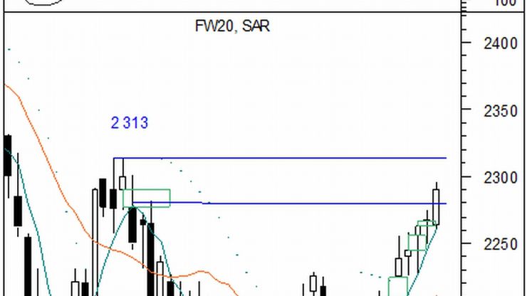 Pierwsza sesja tygodnia okazała się udana dla posiadaczy długich pozycji. Marcowa seria kontraktów na WIG20 zakończyła dzień na 1% plusie. Na wykresie dziennym wyrysowana została duża, biała świeca o pozytywnej wymowie, umiejscowiona powyżej poprzedniej i jednocześnie domykająca lukę hossy z grudnia zeszłego roku. Popyt utrzymał się również powyżej średniej SK-15, co implikuje prawdopodobieństwo kontynuacji ruchu na północ i ataku na szczyt na 2 313 pkt.