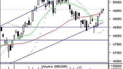 Poniedziałkowa sesja na warszawskim parkiecie przyniosła kontynuację zwyżki. Indeks szerokiego rynku zakończył dzień wzrostem o 0,14% przy obrotach zaledwie 560 mln zł. Byki poprawiły swój dorobek, choć większość sesji przebiegała pod dyktando podaży. Niedźwiedzie mogły sobie pozwolić na śmielsze poczynania głównie ze względu na niewielkie zainteresowanie inwestorów handlem, prawdopodobnie podyktowane brakiem sesji w USA i GB. Na wykresie indeksu wyrysowana została czarna świeca z niskim korpusem oraz dłuższym, dolnym cieniem. W trakcie dnia sprzedający próbowali przetestować wsparcie w postaci SK 45, ale ostatecznie notowania zamknęły się wyżej, w okolicach 61,8% zniesienia całej bessy. Szybkie oscylatory nadal sukcesywnie rosną, chociaż sześciodniowe wzrosty nie uzyskały żadnego potwierdzenia ze strony ADX. Trudno jednak oczekiwać, aby sesja o tak słabym obrocie mogła zmienić techniczny obraz na tym wskaźniku. Dzisiaj na rynek powinien wrócić kapitał, którego alokacja zdeterminuje przebieg sesji,