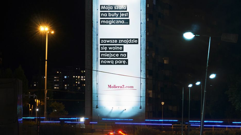 Zależy nam aby działać niestandardowo, przykuwać uwagę w nieoczywisty sposób, dlatego stawiamy na intrygujące treści i spektakularne nośniki, które zwrócą uwagę naszej grupy docelowej. Reklama OOH jest dla nas bardzo istotną częścią promocji naszej marki, a hasła użyte w grudniowej kampanii idealnie wpisują się w świąteczny klimat. Od samego początku kluczowe dla nas było aby wybrane lokalizacje charakteryzowały się bardzo wysokim traffikiem, a powierzchnie reklamowe zapewniały jak najlepszą widoczność."- mówi Agnieszka Majczyk PR&Marketing Manager sklepu internetowego Moliera2.com.
