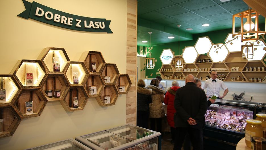 Sklep "Dobre z lasu" działa w budynku Dyrekcji Generalnej Lasów Państwowych w Warszawie. Leśnicy sprzedają przede wszystkim wędliny oraz surowe mięso z dzika, jelenia czy sarny. Poza tym w ofercie sklepu mają być miody i inne produkty pracy pszczół: propolis, pyłek czy świece. Dla wielbicieli słodyczy są konfitury i soki z leśnych owoców, a także słodycze, jakk ciastka z żołędzi.