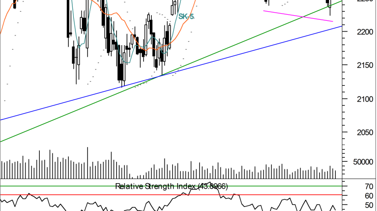 W krótkim okresie zmiany cen kształtowane są przez graczy jednosesyjnych. Wskaźnik RSI oscyluje ponownie w okolicach 50 pkt – swojego rejonu neutralnego. Natomiast w średnim okresie sytuacja techniczna pozostaje patowa: ADX sygnalizujący siłę i kierunek trendu wskazuje na utrzymywanie się tendencji bocznej (ADX poniżej 20) z minimalną przewagą sprzedających (linia –DI góruje nad +DI). W dalszym ciągu aktywna jest dywergencja pozytywna pomiędzy wskazaniami RSI, a kursem kontraktów i wydaje się, że dopiero ewentualne przełamanie dołka na 2 224 pkt powinno załamać dywergencję. Patrząc z nieco szerszej perspektywy, sytuacja techniczna mogłaby ulec poprawie dopiero, gdy kurs kontraktów wybije się powyżej linii trendu spadkowego, zapoczątkowanego w lutym, która aktualnie znajduje się na 2 310 pkt.