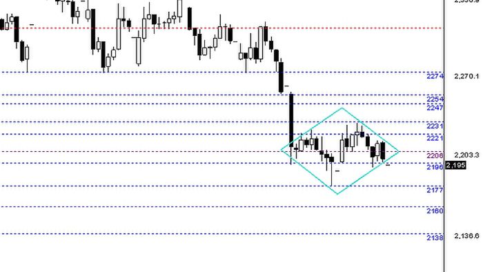 Przed 14.30 rynki zamarły czekając na dane z gospodarki amerykańskiej. Odczyt PKB za trzeci kwartał został jednak skorygowany w dół z 2,5% do 2%, co spowodowało wyprzedaż, która sprowadziła kontrakty do poziomu 2193, które było dziennym minimum. Pierwsza godzina po otwarciu rynków w Stanach przebiegała jednak korzystnie dla byków i nasze kontrakty były w stanie ponownie zanotować wzrost do poziomu 2216, czyli w pobliże strefy, którą wskazywałem jako istotny opór 2218-2221. Końcówka sesji to jednak ponowna przewaga niedźwiedzi i zamknięcie rynku na poziomie 2195, czyli blisko dziennych minimów.