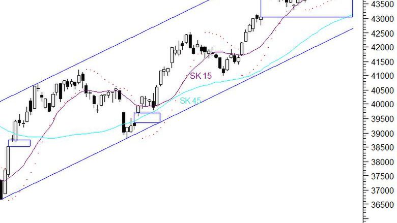 Czwartkowe zmagania indeks szerokiego rynku zakończył wzrostem o 0,44% przy obrotach na poziomie blisko 999 mln zł. Poranne pomruki niedźwiedzi wyraźnie zmobilizowały stronę popytową, która zdominowała kolejne godziny handlu. Kluczowym efektem wczorajszych kwotowań jest (prawda że nieznaczne) pokonanie dotychczasowego, październikowego maksimum. Tym samym, jeżeli intencje kupujących znajdą potwierdzenie w trakcie najbliższych sesji, bazowym scenariuszem pozostaje zwyżka w kierunku górnego ograniczenia średnioterminowego kanału wzrostowego, w ramach której byki będą musiały zmierzyć się z psychologicznym poziomem 45 000 pkt, powyżej którego rynek był ostatni raz w sierpniu 2011 r. Taktyczne wsparcie wyznacza zakres wtorkowej luki hossy. Pozytywny sygnał wygenerował RSI, przebijając linię trendu spadkowego. Sytuacja na średnioterminowym ADX nie uległa większym zmianom.