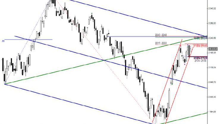 W efekcie już w pierwszych minutach handlu kontrakty znalazły się ponownie w rejonie lokalnej zapory podażowej: 2217 – 2222 pkt., zbudowanej na bazie zniesienia 61.8%. Gdy wydawało się, że wymieniony przedział zostanie wreszcie sforsowany i tym samym kontrakty zdołają dotrzeć do kluczowej bariery podażowej Fibonacciego: 2243 – 2248 pkt., impet ruchu zaczął się stopniowo wyczerpywać. Co prawda z pewnym przesileniem mieliśmy także do czynienia na pozostałych rynkach Eurolandu, ale jednak sceptycyzm widoczny na giełdzie warszawskiej był tutaj zdecydowanie najsilniej odczuwalny.