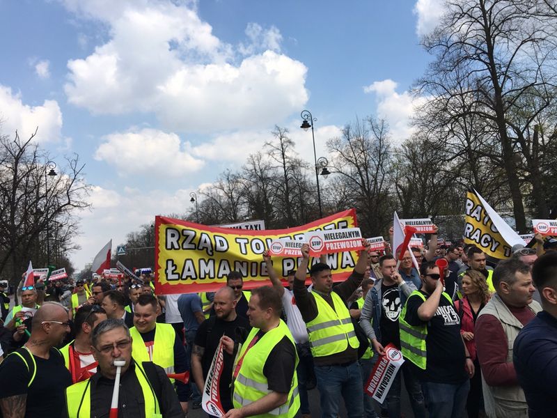 Od godziny 6 rano w kilku miejscach Warszawy i okolic organizowali się taksówkarze, którzy w poniedziałek sparaliżowali miasto oraz autostradę A2 na odcinku od Grodziska Mazowieckiego do stolicy. Od 11:30 pikietują pod KPRM