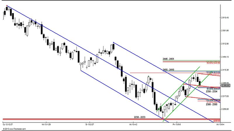 Z punktu widzenia techniki wartościowym sygnałem okazało się wcześniejsze przełamanie lokalnej zapory popytowej: 2369 – 2373 pkt. Rzeczywiście doszło bowiem do wzrostu presji podażowej i konfrontacji w kolejnym, już dużo istotniejszym węźle Fibonacciego: 2350 – 2354 pkt.