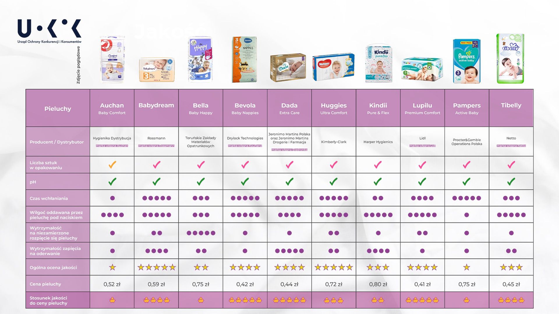 - Wyniki badania pieluch również dla nas okazały się dużym zaskoczeniem, w szczególności względem marek posiadających bodajże najlepszą rozpoznawalność na polskim rynku. Mam jednak nadzieję, że po lekturze raportu wybór pieluch będzie dla Państwa nieco łatwiejszy – przekonuje prezes UOKiK Tomasz Chróstny.