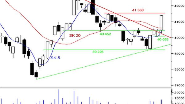 Niewielkie osłabienie indeksu na wczorajszej sesji było efektem dużego wzrostu wypracowanego na wtorkowej sesji przy niewielkim udziale inwestorów, stanowiącej o słabej sile wybicia. Wczorajszy spadek został powstrzymany na wysokości połowy wtorkowej świecy pokrywającej się z wsparciem z połowy świecy z 24.1, co jest pozytywnym sygnałem, aczkolwiek na ostatnich sesjach o małym obrocie (890 mln zł wczoraj) rynek utrzymuje tego typu słabe wsparcia i opory. Tak faktycznie wczorajsza sesja nie przyniosła przełomu. Indeks wciąż porusza się w trendzie horyzontalnym (na co wskazuje opadający ADX) ograniczonym przez trójkąt, gdzie wsparciem pozostaje przyspieszona linia trendu wzrostowego oraz niżej luka z 24.11. Oporem pozostaje poziom, z którym ostatnio popyt miał duże problemy 27 590 pkt., którego pokonanie na dzisiejszej sesji będzie bardzo trudne z uwagi na wciąż niekorzystne wskazania szybkich oscylatorów. Zmniejszający się obrót jest charakterystycznym dla formacji trójkąta, mówiącej o kontynuacji trendu