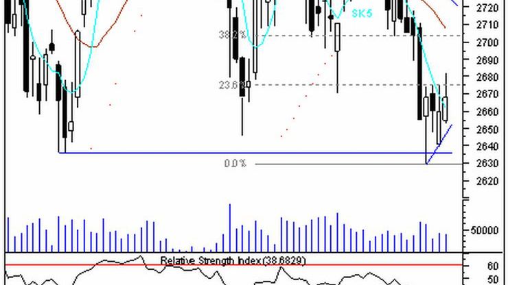 Środowa sesja przyniosła kontynuację zmagań mających na celu odreagowanie ostatniej przeceny. Pomimo przejściowo korzystnej sytuacji, strona popytowa niespecjalnie zdaje się wierzyć w swoje szanse i w konsekwencji rynek znajduje się w krótkoterminowej konsolidacji. Po sesji na wykresie wyrysowana została biała świeca z górnym cieniem. Byki nie zdołały sforsować pułapu 2 680 pkt, gdzie znajduje się pierwszy istotny opór wynikający z połowy czarnego korpusu z ubiegłego czwartku. Mocną barierę wyznacza również 23,6% zniesienia Fibonacciego spadków styczeń-luty (2 675 pkt), który to poziom już czwarty raz zatrzymał ruch kupujących. Dorobek byków ograniczył się do pokonania opadającej SK-5. Wskaźnikowo potencjał wzrostowy wykazuje krótkoterminowy RSI ale już umacniający się oscylator siły trendu ADX jest o krok od wygenerowania sygnału sprzedaży o charakterze średnioterminowym. Dopóki zatem rynek nie wyrwie się z ram kilkudniowej konsolidacji, nie będzie warunków do rzeczywistego odrobienia ostatnich spadków.