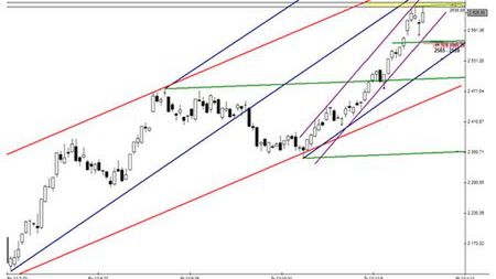 Próby zanegowania w/w zakresu nie doprowadzały jednak do wybicia. W komentarzach sugerowałem, że warto w tym kontekście zwrócić uwagę na filtr cenowy zbudowany tradycyjnie na bazie zniesienia 113% (poziom 2647 pkt.). Zakładałem, że dopiero w przypadku zanegowania wymienionej bariery cenowej wzrosłoby prawdopodobieństwo wejścia rynku w kolejną fazę hossy.
