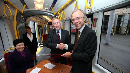 Prezydent Warszawy Hanna Gronkiewicz-Waltz, obecna podczas uroczystości podpisania umowy kredytowej, wyraziła zadowolenie, że "po bardzo długich i trudnych negocjacjach" miasto może podpisać umowę o pożyczkę. "Cieszę się, że jeszcze do końca tego roku zostanie dostarczonych 30 nowych tramwajów" - dodała.