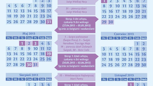 Więcej wolnego w 2013 r.