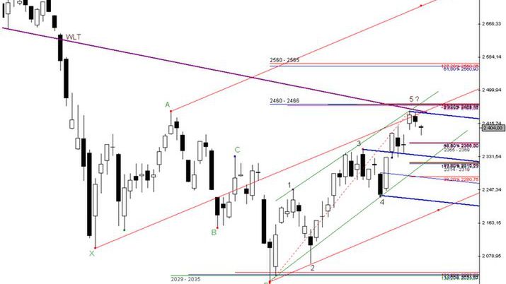 W swoich ostatnich opracowaniach eksponowałem wielokrotnie znaczenie bariery podażowej Fibonacciego: 2460 – 2466 pkt. Strefa jak pamiętamy odzwierciedla istnienie zależności pomiędzy podfalami tworzącymi elliottowską strukturę pięciofalową.
