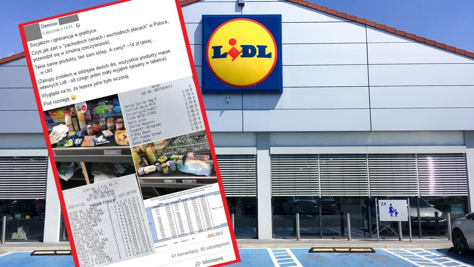 "Socjalizm i ignorancja w praktyce" - zaczął swój wpis na Facebooku pan Damian. Mężczyzna porównał ceny zakupów w polskim i brytyjskim Lidlu. Wynik? 14 zł więcej wydanych w naszym kraju. Biuro prasowe sieci tłumaczy nam, skąd biorą się różnice.