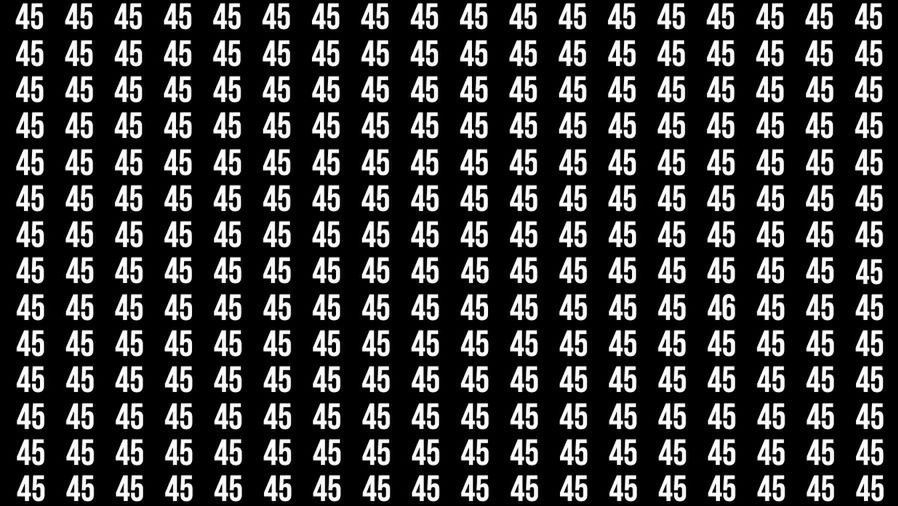 To zadanie, dzięki którym sprawdzisz swoją spostrzegawczość, zostało opublikowane w serwisie fresherslive.com. Polega ono na tym, by w 20 sekund (a najlepiej w mniej) znaleźć liczbę 46 na planszy wypełnionej niemal w całości powtarzającą się liczbą 45. Choć zadanie na pierwszy rzut oka wydaje się łatwe, to limit czasowy zdecydowanie utrudnia całą sprawę.