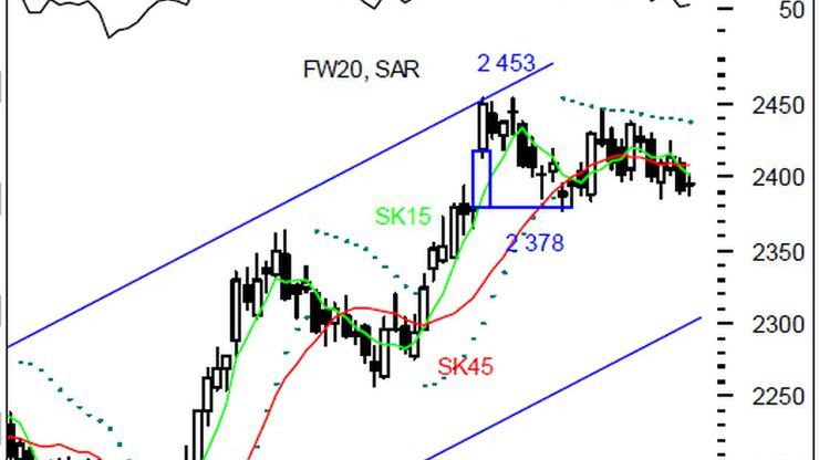Z technicznego punktu widzenia wczorajsze notowania na rynku terminowym można zaliczyć do neutralnych. Zamknięcie zaledwie 0,17% powyżej odniesienia zapewniło wyrysowanie w układzie dziennym niewielkiej świecy doji, świadczącej o równowadze sił. Dodatkowo niskie obroty sprawiają, że sytuacja pozostaje nadal nierozstrzygnięta a większy kapitał nie zdecydował jeszcze o wyborze strategii na najbliższe dni. Ruch boczny potwierdzają również obserwowane wskaźniki. RSI utrzymuje się w strefie neutralnej przy podobnym zachowaniu Composite Index. Czas gra z kolei na niekorzyść kupujących co ewidentnie podkreśla osłabiający się z dnia na dzień ADX, który po wczorajszej sesji osiągnął już tylko poziom 28 pkt. W tym kontekście, pomimo nadal utrzymującej się nieznacznej przewagi kupujących, dalsze zwlekanie z atakiem na ostatnie lokalne szczyty może obrócić się przeciwko bykom. Zmiana nastawienia na negatywne nastąpi jednak dopiero po przełamaniu najbliższego wsparcia na poziomie2 378 pkt.